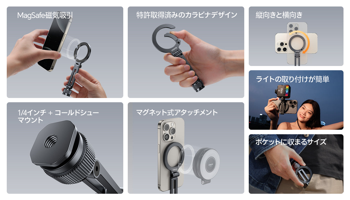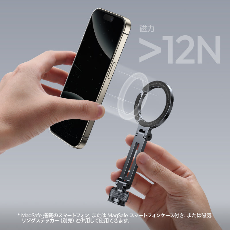 MagSafeで数秒で携帯電話を装着でき、いつでもすぐに撮影をスタートすることができます。
