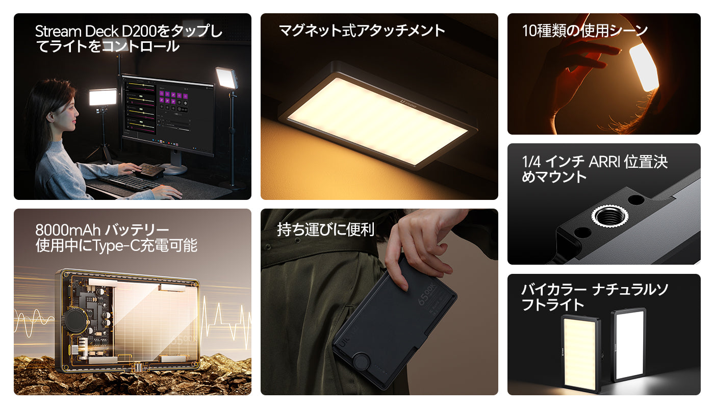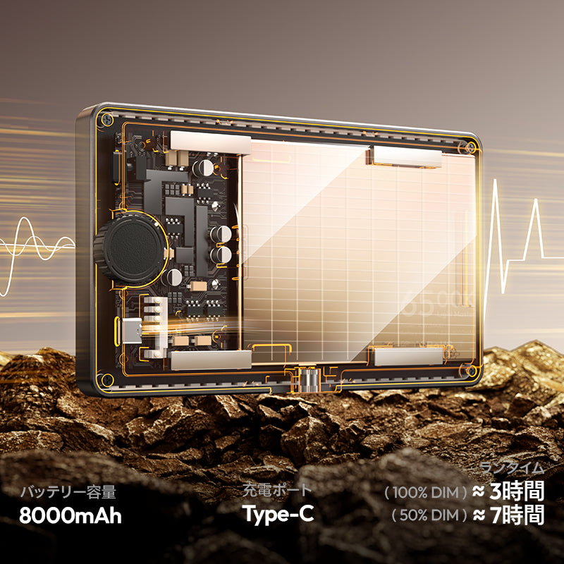 8000mAhバッテリーは最大7時間の連続点灯が可能で、Type-C充電によりシームレスで中断のない使用が可能です。