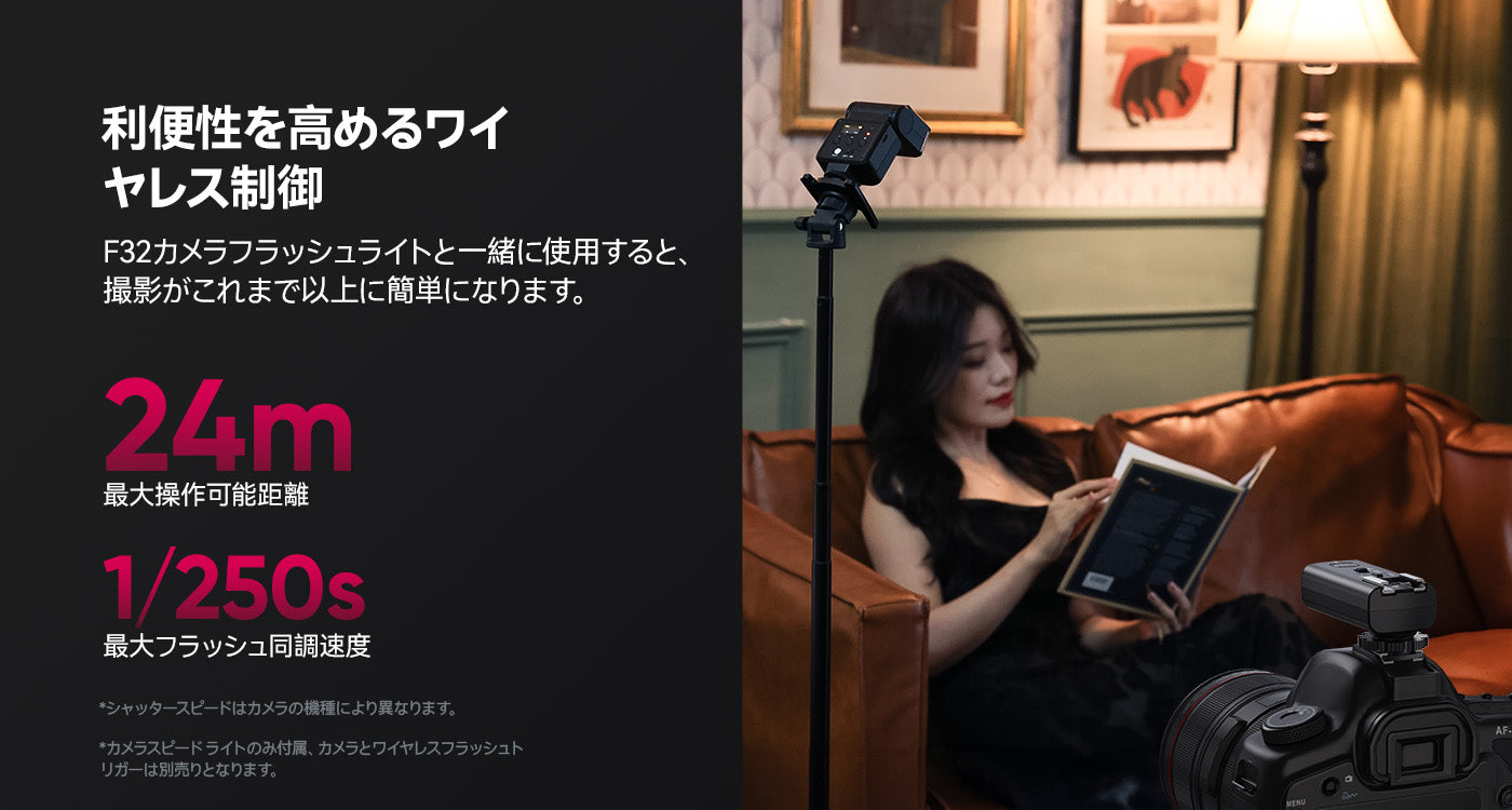 • 3. 24m最大動作距離+1/250s最大フラッシュ同期速度
