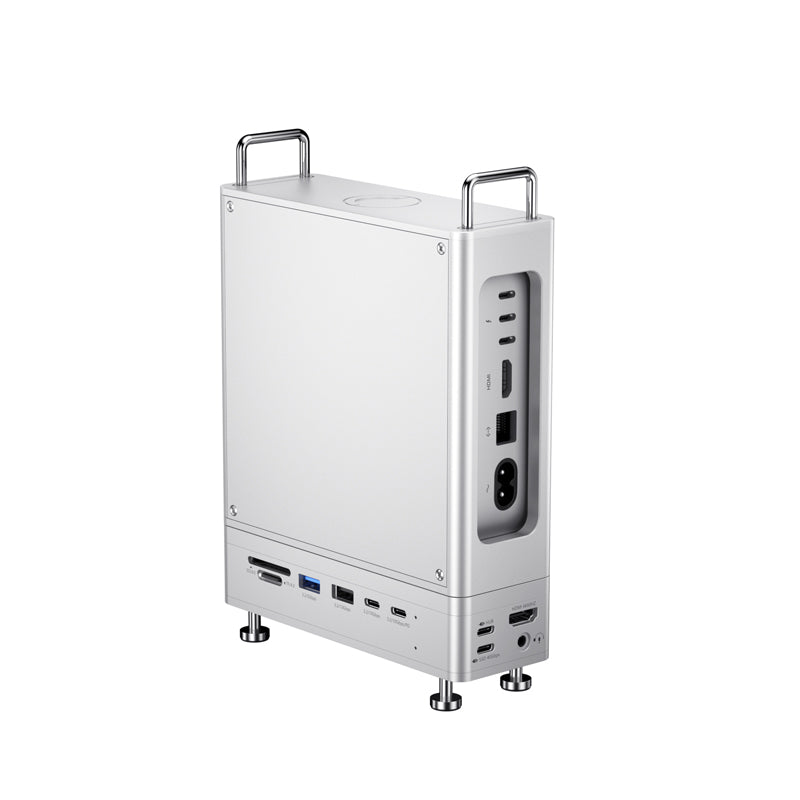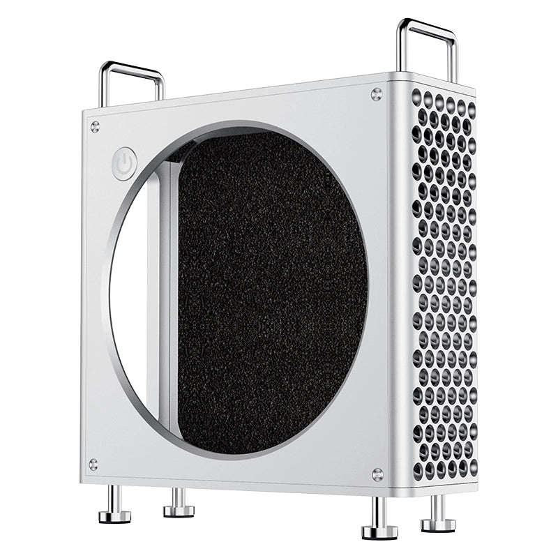 Mac Pro をモデルにしたこのケースは、Mac Mini に洗練されたプロフェッショナルな外観を加え、あらゆるワークスペースにフィットするモジュラーデザインを特徴としています。