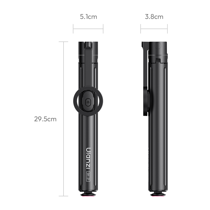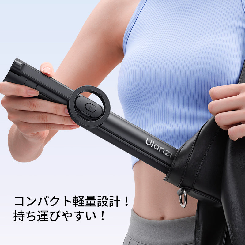 コンパクト設計により日常撮影のニーズを一台でカバーし、底部に搭載したマグネット機能が自動的に吸着して誤作動を防ぎ、持ち運び中の意図しない展開を確実に回避します。重量は約 380g、収納時の長さは約 30cm と軽量短小なので、カバンに入れても場所を取らず、出かける際の準備も手間いらずです。