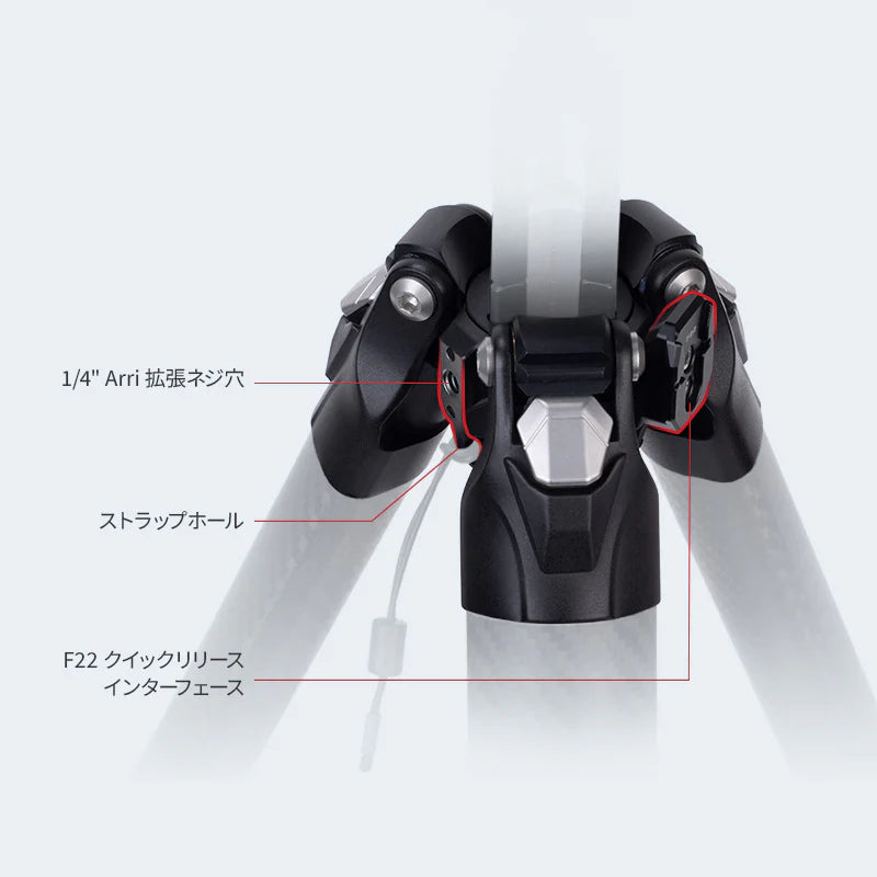 F22クイックリリースインターフェイス、1/4インチArri拡張ねじ穴、ストラップホール、Maglink との互換性を備えています。