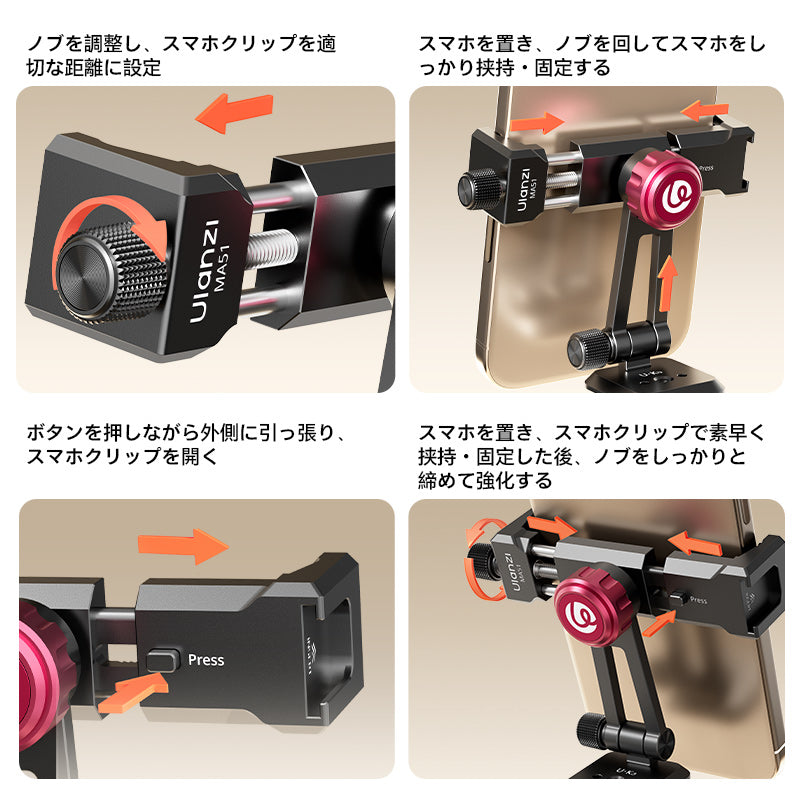 通常調整:標準サイズのスマホに対応し、日常的な撮影や固定ニーズを手軽に満たせます