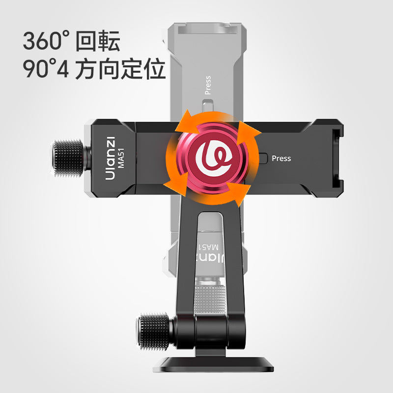 4 方向の位置を確保し、縦横構図の迅速切り替えと、回転して簡単な俯角撮影を実現。多角度での撮影ニーズに応え、自由度の高い操作体験を提供します。