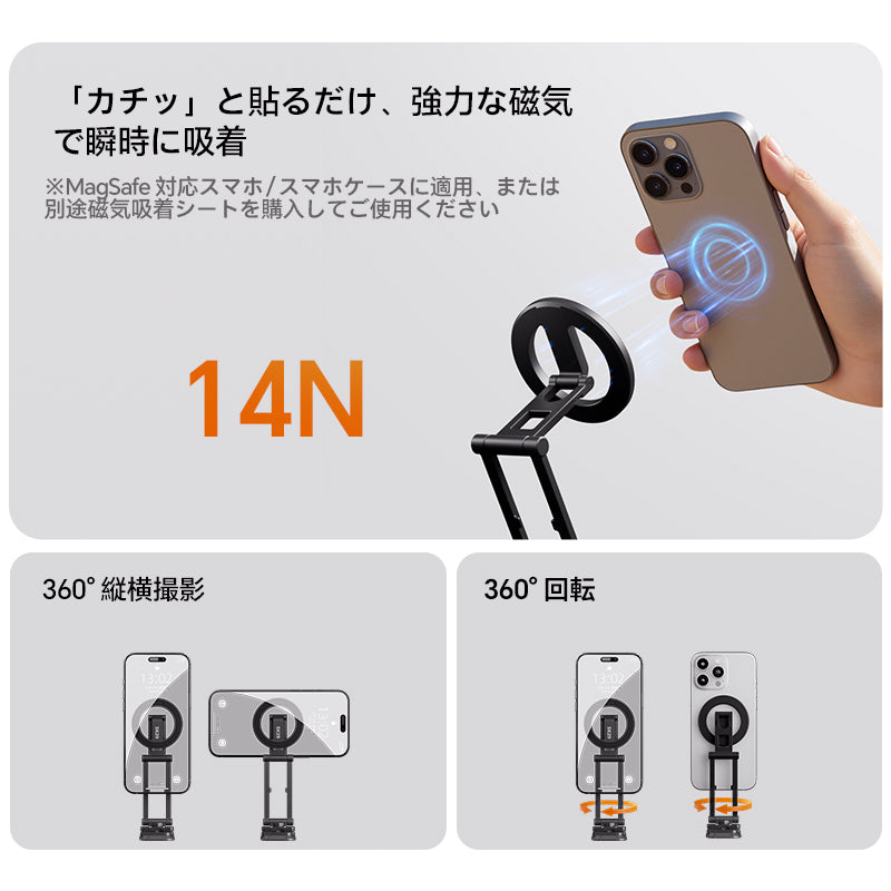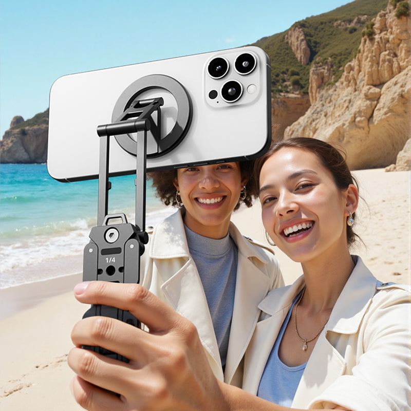 マグネット式・スマホクランプ式からお選びいただけ、360° スムーズ回転で、旅行風景・日常 Vlog・グループ写真など、どのシーンでも縦横撮影を楽しめます。「カチッ」一着ければ、強力マグネットで瞬時吸着。手ぶれや軽い衝撃があってもズレることなく、急なシャッターチャンスでも確実にキャプチャできます。