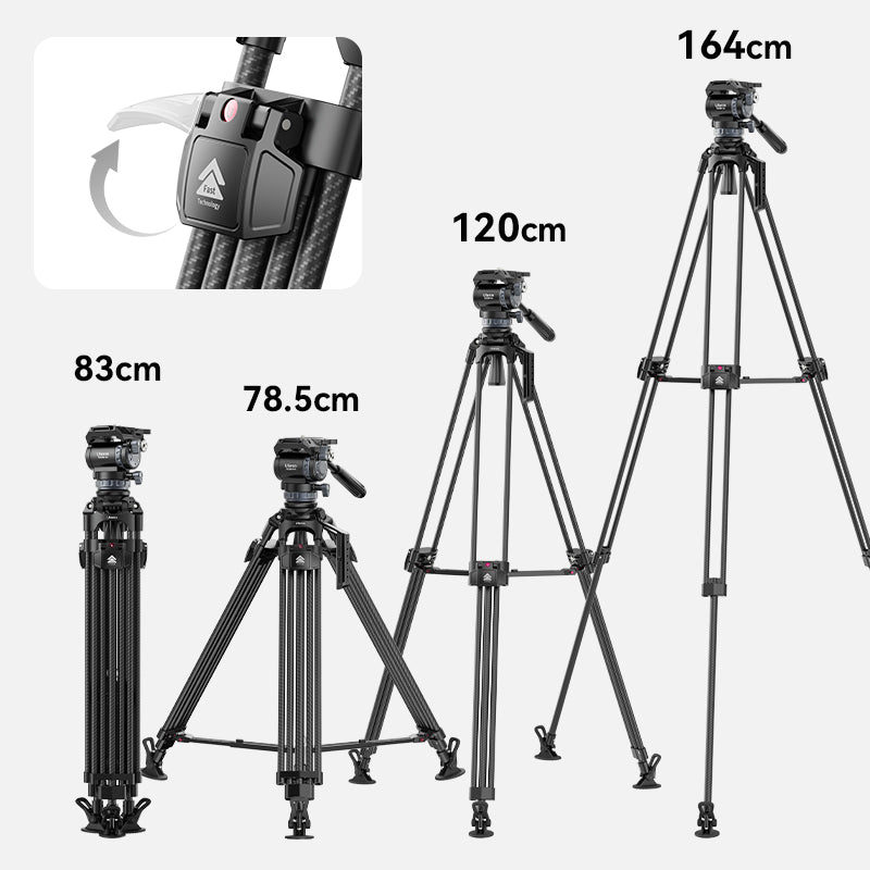 ワンタッチで簡単に昇降と高さ固定ができ、素早くカメラヘッドを取り付け、数秒で撮影をセットアップできます。3本の脚は、さまざまな撮影ニーズに合わせて任意に調整でき、狭い場所や凹凸のある場所での撮影をサポートします。VideoFastは、動きの速いフォトグラファーに迅速な展開を提供します
