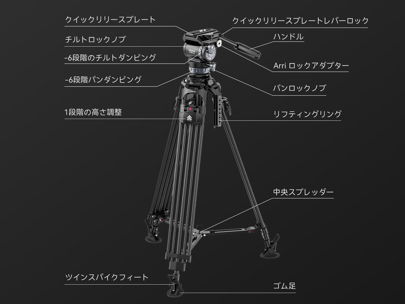 - 三脚脚の耐荷重:25kg(55ポンド)