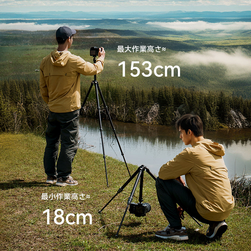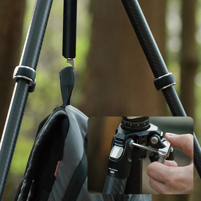 高品質のT300カーボンファイバーを採用し、9層強化カーボンクロス構造+1.3mm厚のチューブ壁により、最大静的垂直荷重は40kgです。同価格帯の類似三脚と比べて、圧倒的な高強度と卓越したねじれ耐性を両立します。