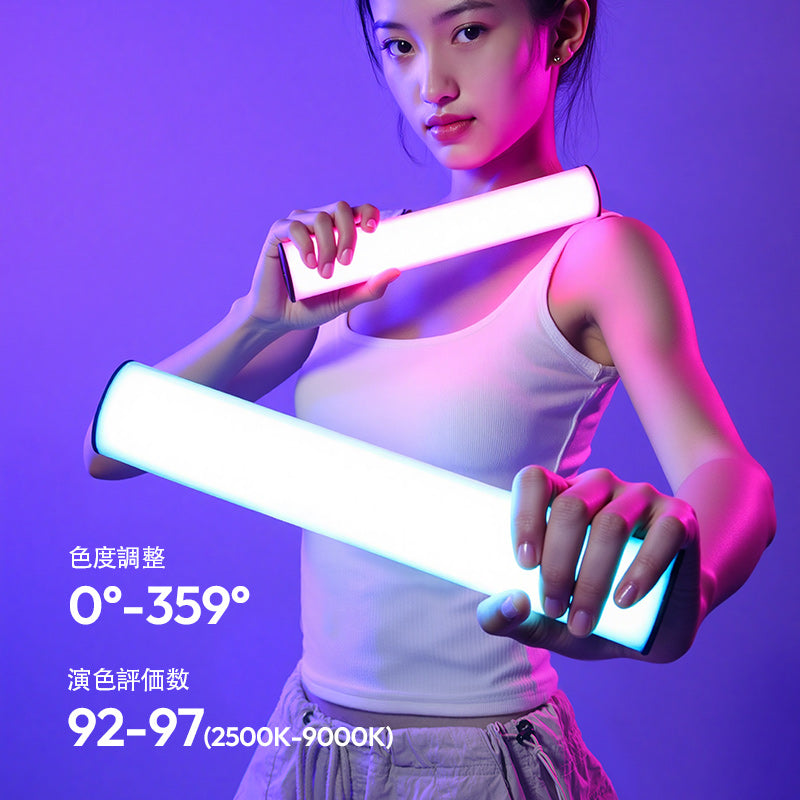 1800K から 9000K までの極めて広い色温度範囲をカバーし、撮影シーンに合わせた「雰囲気の光」を簡単に再現可能!夕日の柔らかい暖色系光、昼間の清らかな自然光、さらにクールな冷色系光まで、手軽に切り替えて理想の光環境を作り出せる。