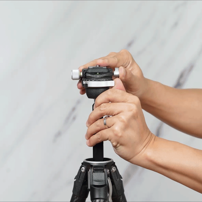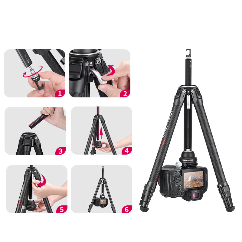 - 三脚からライトスタンドへ素早く切り替えられます。センターシャフトをVC4ライトポールに交換すると、三脚が瞬時にライトスタンドになります。