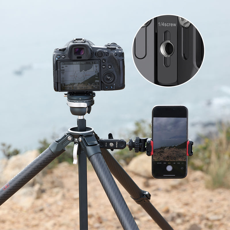 1/4ネジがあり、スマホなどほかのアクセサリーとの接続が可能です。