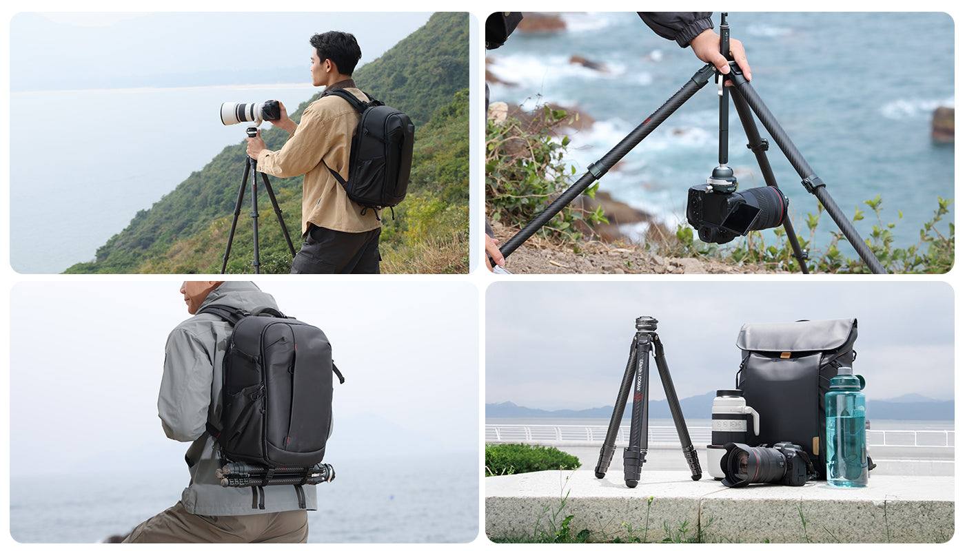 片手にすっぽり収まるサイズで持ち運びに便利です。それに、カーボンファイバー構造でより軽く、より強い、旅の相棒に最適です。