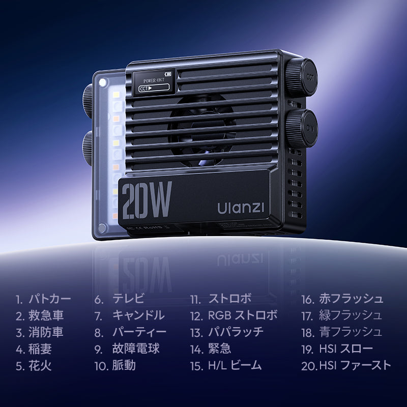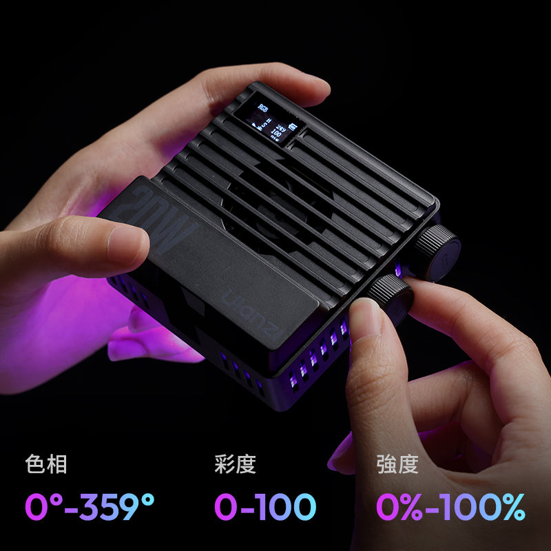 フルカラー RGB で創造性を解き放ちましょう。HSI カラー モードでは、無段階ノブを使用して色相、彩度、光強度を簡単に微調整できます。