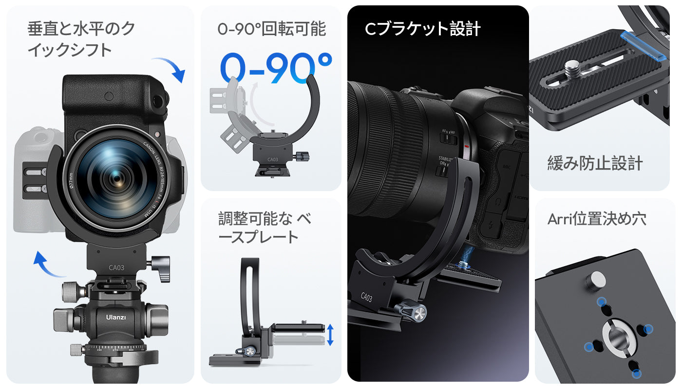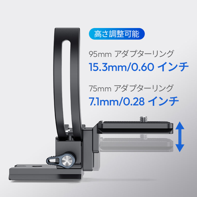 ベースプレートの高さは、レンズの中心に合わせて自由に調整でき、さまざまなカメラに適しています。