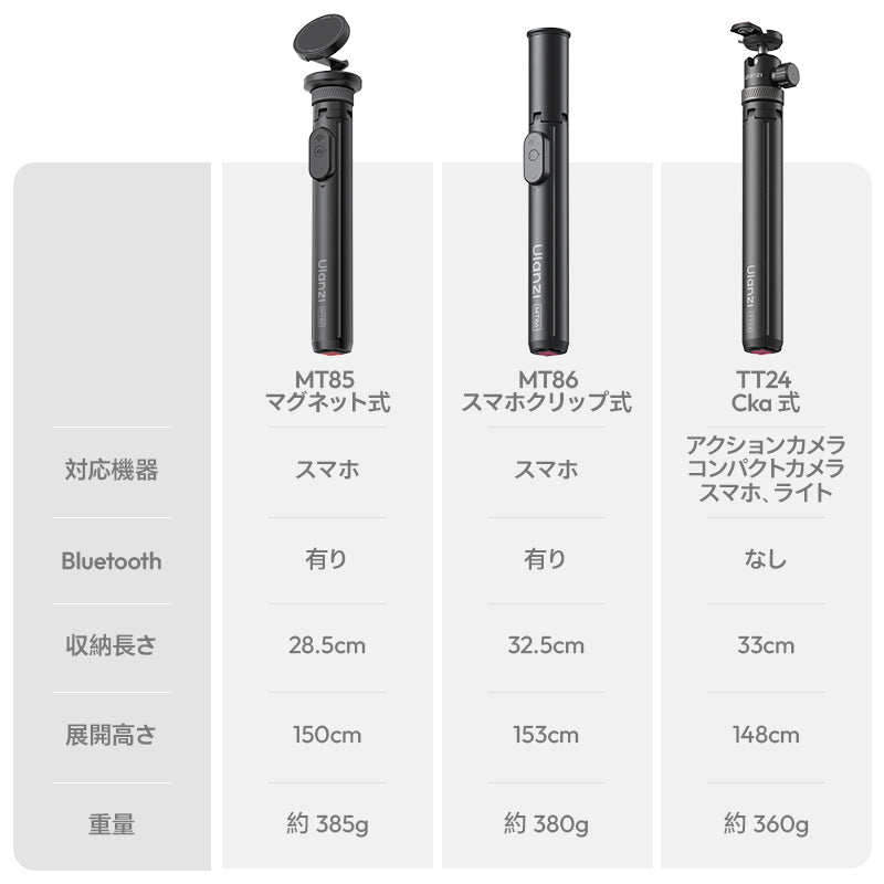 ※上記仕様は Ulanzi 研究所にて測定したデータであり、参考情報として提供します。仕様の変更がある場合は、あらかじめ通知することなく変更することがありますので、ご了承ください。