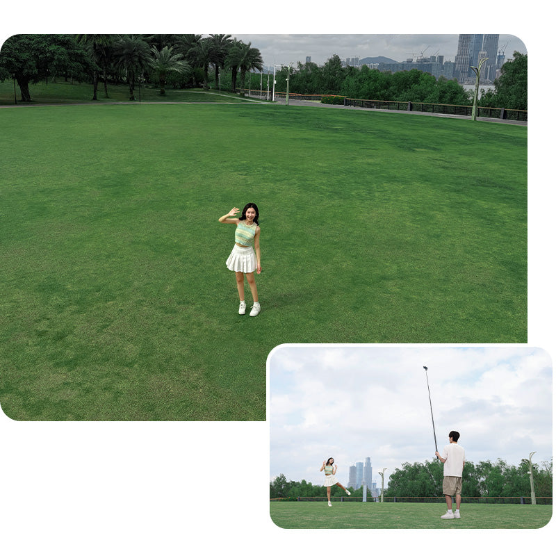 自撮り棒の底部に 1/4 インチのネジ穴を装備しており、雲台や三脚などのアクセサリーと簡単に連結できます。これにより、パノラマ撮影、ローアングルショット、タイムラプスなど、多種多様な撮影方案を実現可能で、創造的な表現を広げることができます。